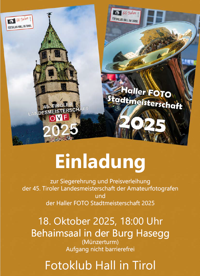 Der Fotoklub Hall lädt alle TeilnehmerInnen und Fotointeressierten recht herzlich zur Siegerehrung und Preisverleihung