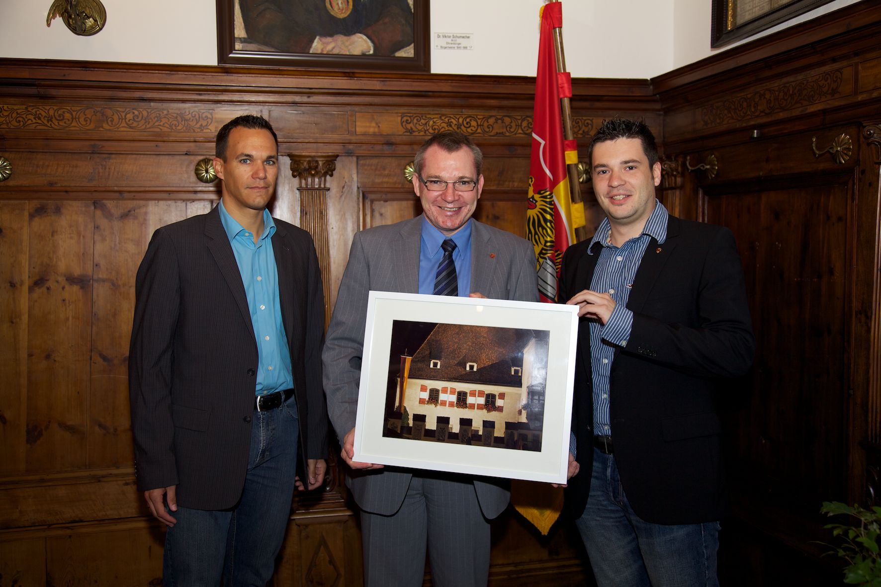 Zum Abschluss überreichte der Obmann dem Bürgermeister ein Foto des Rathauses. |